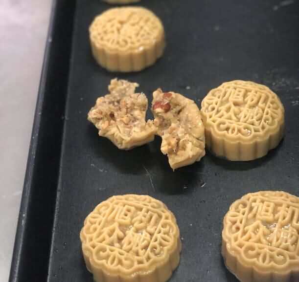 旭众新款XZ-68多功能包馅机馅管短,管内存料少,减小出馅压力,有效保护馅料颗粒,使馅料更松散、产品重量、皮馅比例更加稳定,适用多种馅料;中秋临近,需求月饼机的客户越来越多,来实地考察试机的客户来了一批又一批,这次客户做的五仁馅月饼,可以看得出里面的五仁馅能大颗粒包制起来,眼见为实欢迎来厂实地考察月饼机