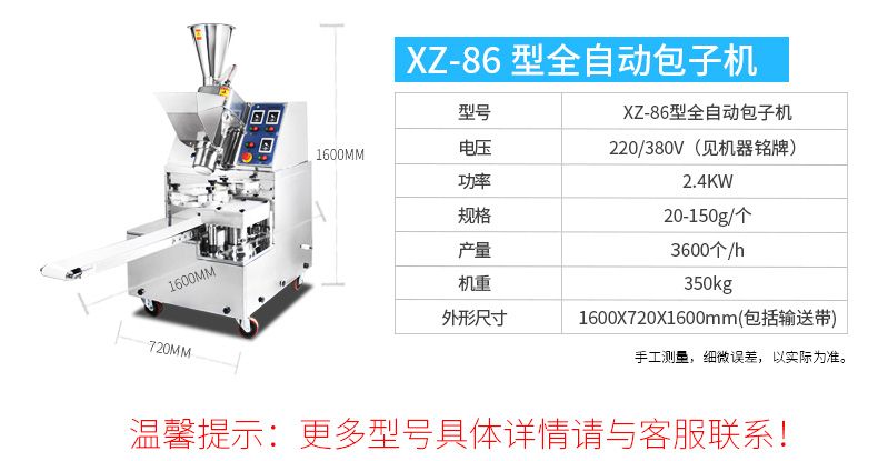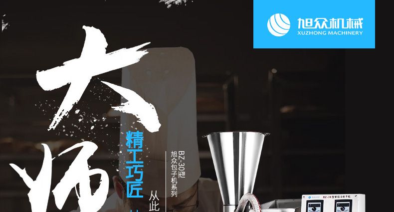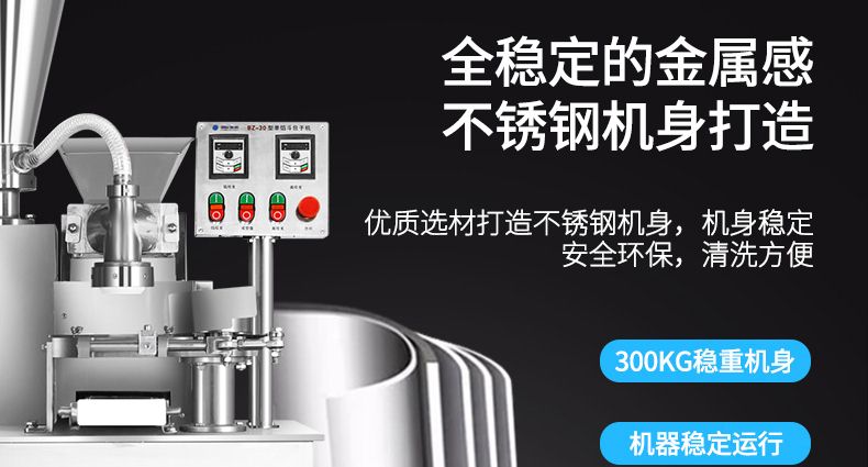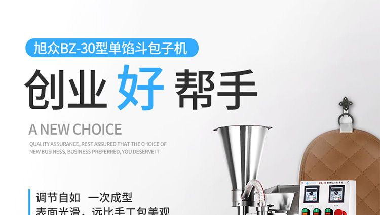 ◆ 旭众牌BZ-30全自动小型包子机采用双变频控制,面、馅大小调节自如、使用方便。产品一次成型,所出产品外形大小统一、表面光滑、花纹整齐,远比手工包美观。