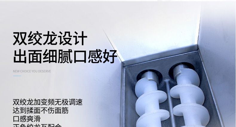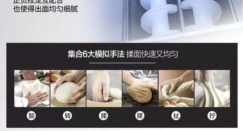 ◆ 按照面点工艺要求的动力学科学设计,保证了产品气孔的均匀细腻,弹韧性、持水性好,且制品表面光亮细腻、花纹整齐、口感滑爽,远远超过手工制作的产品。