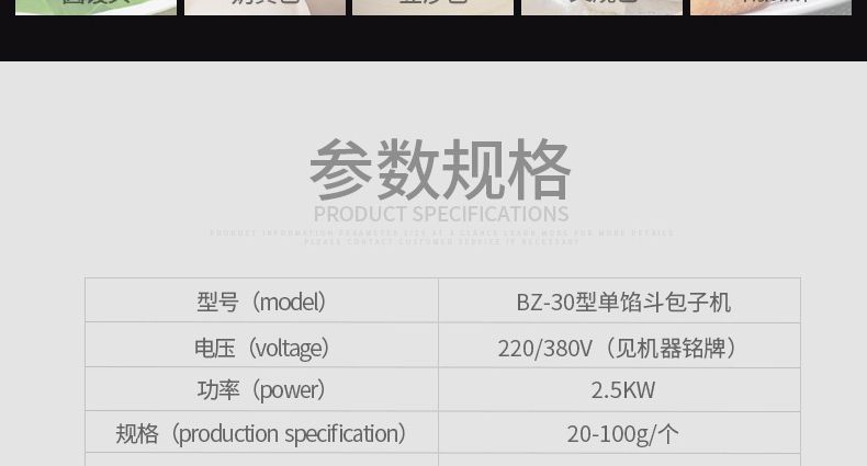 BZ-30型单馅斗包子机,可生产豆沙包、南瓜饼、肉包、小笼包、菜包、圆馒头、奶黄包、叉烧包、汤包、水晶包等几十种包馅制品。适用于个体户、速冻食品厂、学校等各种工作场所。可满足不同客户群体。免费提供工艺技术。