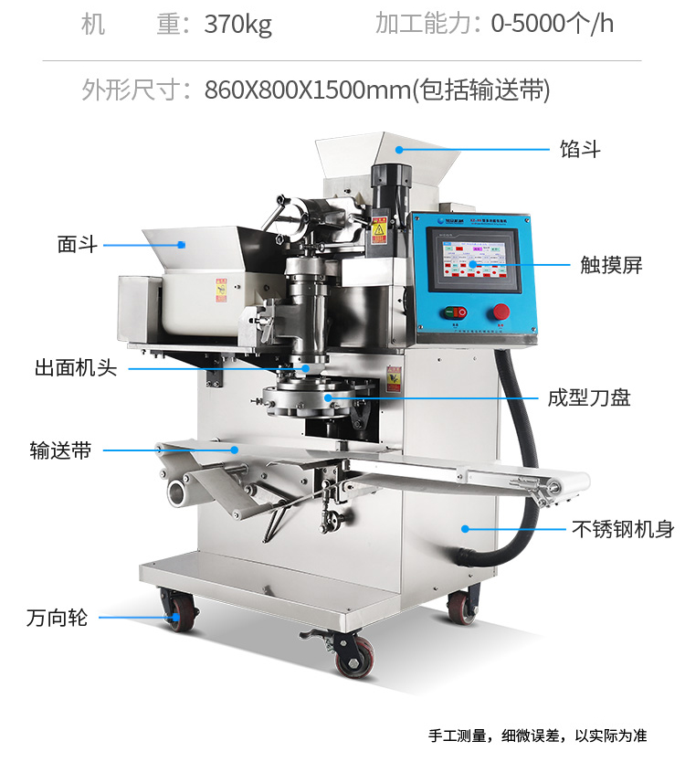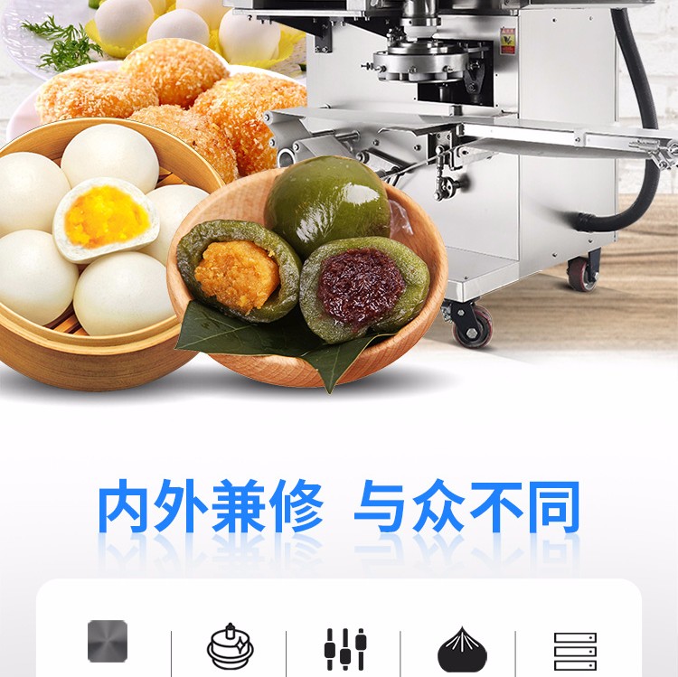 全自动包馅机是制做各种米面制品的设备,符合有关食品机械、食品卫生的规定和要求。它的形制成功,为我国人民喜欢的传统米面食品的机械化大批量生产提供了可靠的设备。该机用途广泛,可制作各式包馅食品,如汤圆、豆沙包、南瓜饼等,是宾馆、饭店、企业、学校、部队等公共食堂和专业户理想的面食机械。