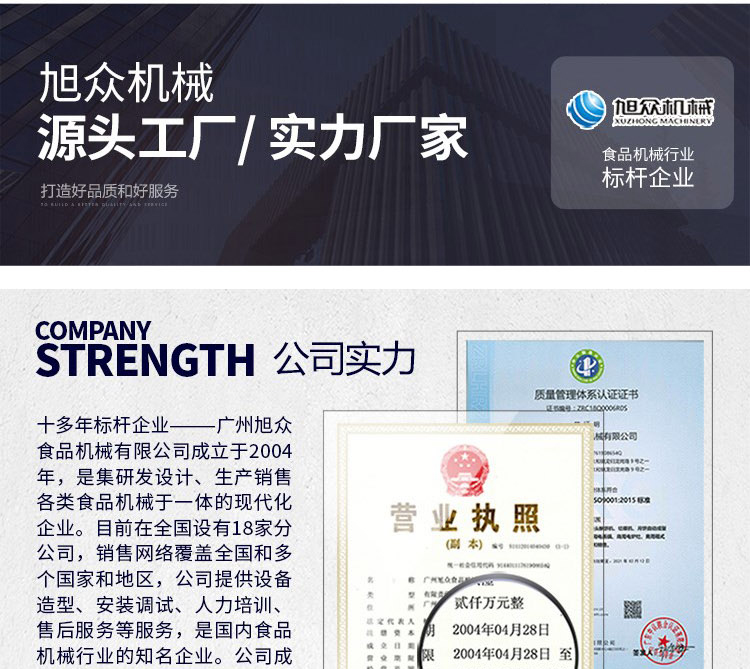 安徽旭众智能科技有限公司是一家集科研开发,生产设计,营销服务为一体的现代化生产企业。现代化生产车间,精湛制造技术,所产机械历经市场重重考验,不断赢得海内外客户的赞誉。
