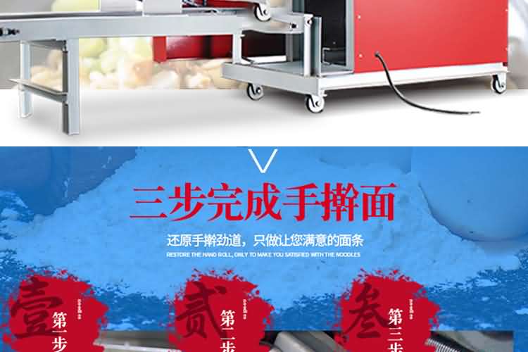 名称小五组/小六组面条机(挂面/湿面) 电源380V 功率3kw 产量200kg/h 尺寸2300×600×1400mm 重量450kg 规格 其他