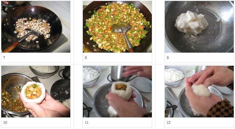 11.慢慢把口捏拢。这个不比面团,没有弹性,故只能不断的把米团往上推,最后合上口。如果感觉比较粘,可以放一边沾水处理。