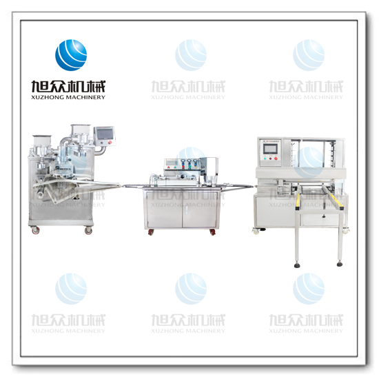 名称新月饼生产线 电源 功率 产量 尺寸 重量 规格 其他详情参数请看SZ-64月饼成型机,SZ-64多功能包馅机,SZ-08型月饼自动排盘机