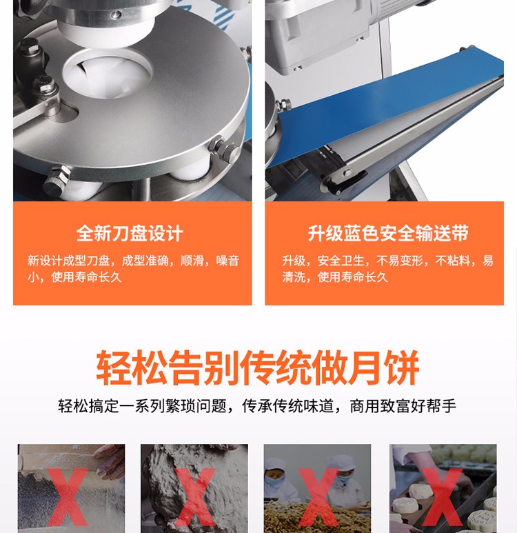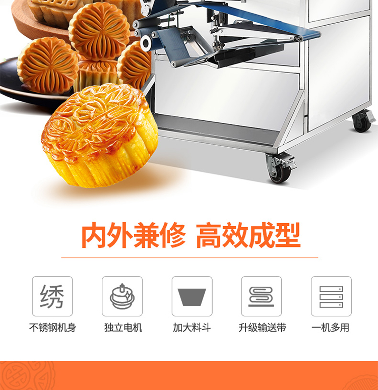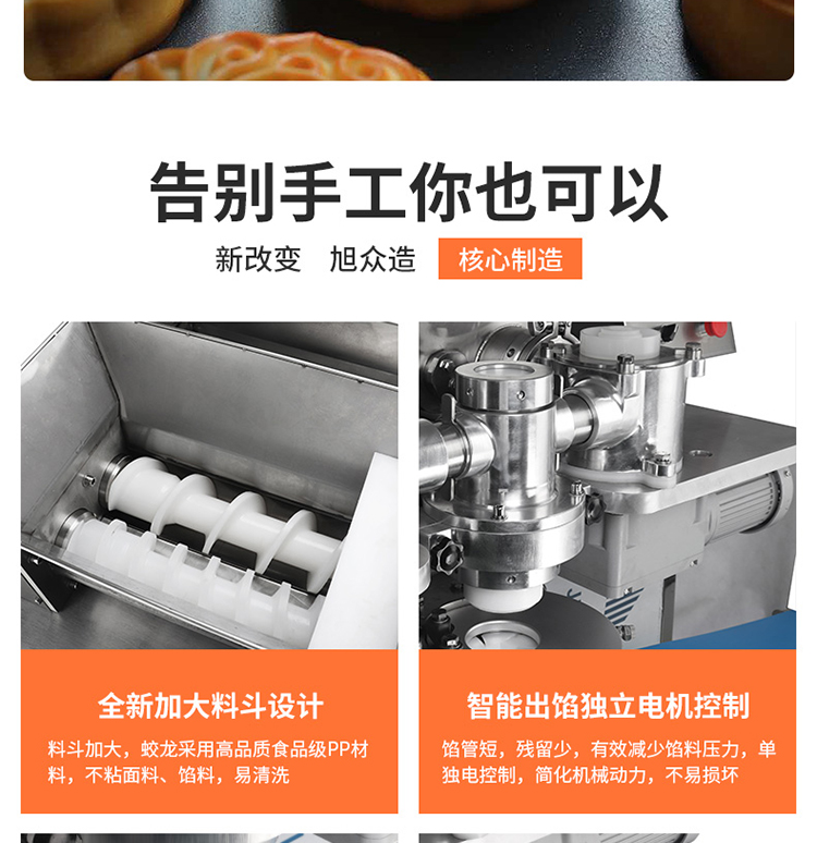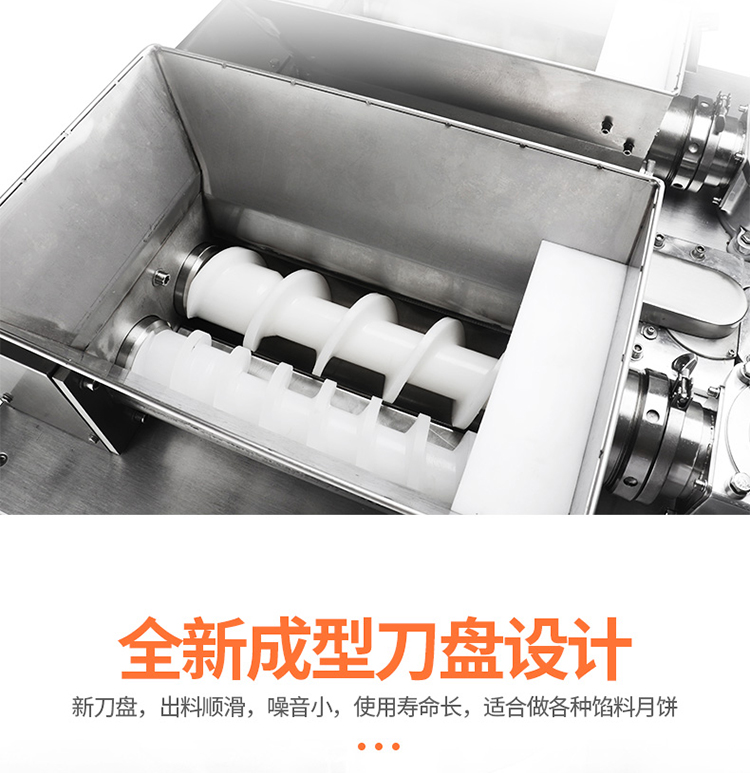 2.馅管更短,管内存料少,减小出馅压力,有效保护馅料颗粒,使馅料更松散、产品重量、皮馅比例更加稳定,适用多种馅料;