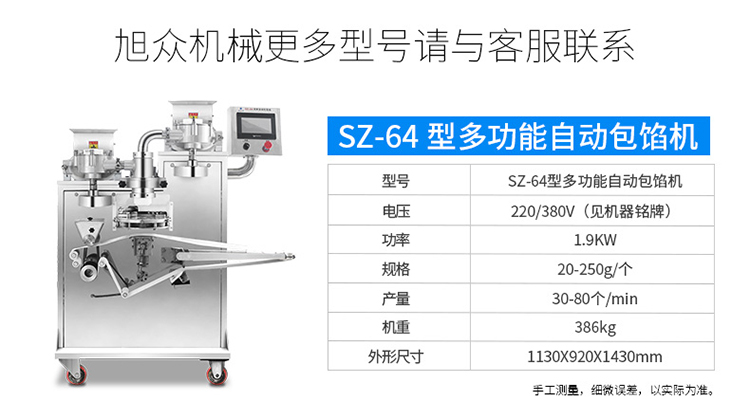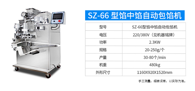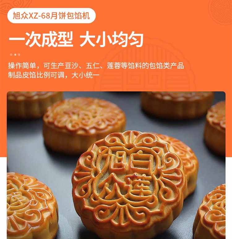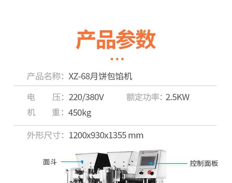 名称XZ-68月饼自动包馅机 电源220/380V 功率2.5kw 产量 尺寸1200×930×1355mm 重量450kg 规格 其他
