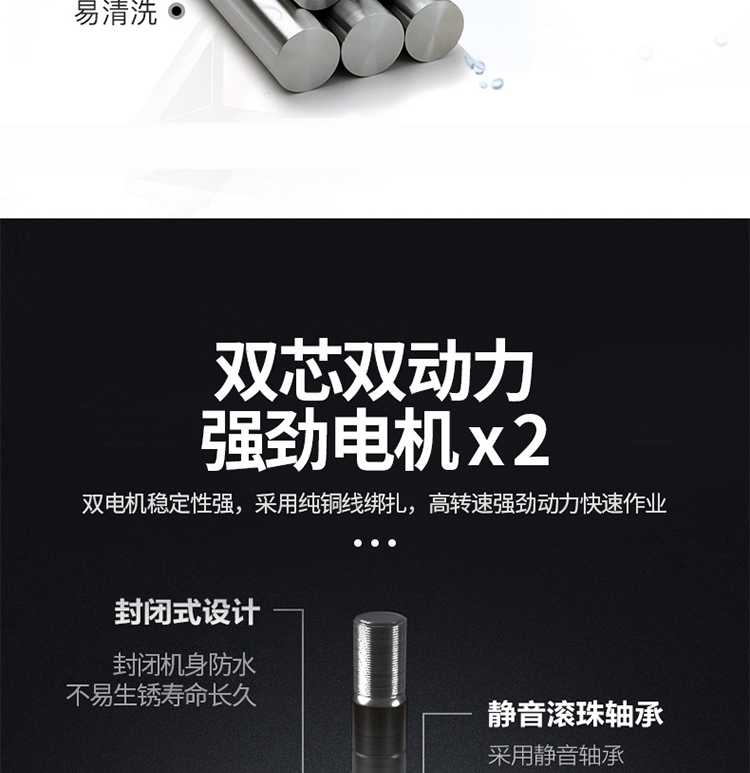 4.机头部分,采用固定式安装,安装更稳固,刮片采用加厚304不锈钢,拆装方便、结构结实牢固、清洗方便;