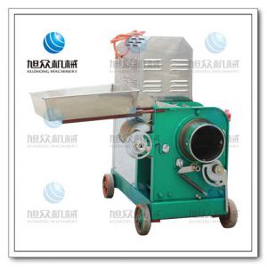 旭众牌SZC-180/300鱼肉采机采鱼肉,本机装有采肉桶和压榨肉用的橡胶带,利用滚动的采肉桶和传动的橡胶带的相互压榨运动将鱼挤入采肉桶内,而把鱼皮、鱼骨留在采肉桶外,由刮刀把它送出机外。