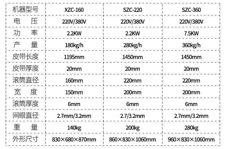 型号 | XZC-160 | XZC-220 | XZC-360 |
